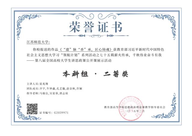 近日,由教育部高校思想政治理論課教學指導委員會主辦的“七十五載薪火傳承,千秋偉業奮斗有我——第八屆全國高校大學生講思政課公開課”展示活動已圓滿完成。本次活動共收到1339所高校提交的5007部大學生講思政課公開課作品。經過激烈角逐,我校報送的作品《“遺”脈“香”承 匠心鑄魂》榮獲全國本科組二等獎,《七十五載逢盛世 深化改革續新篇》榮獲全國本科組三等獎。