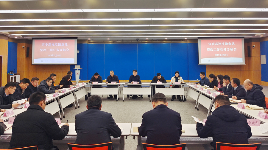 閭浩簡要介紹了省委巡視反饋意見的總體情況及分解原則。他強(qiáng)調(diào),學(xué)校各單位要堅(jiān)決貫徹落實(shí)省委和校黨委部署要求,堅(jiān)持把抓好巡視整改工作作為推進(jìn)全面從嚴(yán)治黨的有力抓手和推動學(xué)校高質(zhì)量發(fā)展的重要契機(jī),切實(shí)擔(dān)起整改主體責(zé)任,堅(jiān)定不移做好巡視“后半篇文章”。閭浩就扎實(shí)推進(jìn)我校巡視整改工作提出三點(diǎn)要求:一是提高政治站位,從政治和全局的高度認(rèn)識巡視整改工作,準(zhǔn)確把握時間節(jié)點(diǎn),厘定整改責(zé)任,對照認(rèn)領(lǐng)問題清單,研究制定務(wù)實(shí)有效的整改舉措;二是強(qiáng)化擔(dān)當(dāng)作為,各相關(guān)單位主要負(fù)責(zé)人要扛起“第一責(zé)任人”職責(zé),堅(jiān)持問題導(dǎo)向,壓實(shí)主體責(zé)任,注重統(tǒng)籌協(xié)調(diào),做到真認(rèn)賬、真反思、真整改、真負(fù)責(zé);三是深化標(biāo)本兼治,堅(jiān)持“當(dāng)下改”與“長久立”相結(jié)合,確保問題整改“事事有舉措、件件有著落”,尤其要聚焦深化改革,聚力完善制度機(jī)制,切實(shí)做到“整改一個問題、完善一套制度、堵塞一批漏洞”,不斷提升辦學(xué)治校能力和水平,促進(jìn)學(xué)校事業(yè)高質(zhì)量發(fā)展。
