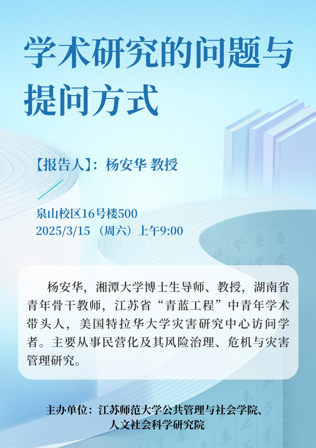 3月15日 楊安華教授學術講座(公共管理與社會學院)