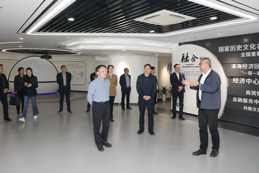我校調研團在陳堂清的陪同下先后參觀了匯智高端工程機械及核心零部件創(chuàng)新中心、淮海人力資源服務產(chǎn)業(yè)園,實地了解經(jīng)開區(qū)科研成果轉化、人力資源服務產(chǎn)業(yè)發(fā)展等情況,對經(jīng)開區(qū)經(jīng)濟社會發(fā)展取得的成就以及校企緊密合作的成果給予充分肯定。