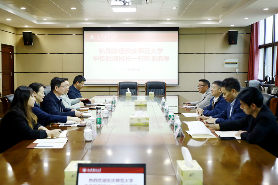 商亮代表學(xué)校對(duì)申傳勝一行表示熱烈歡迎,并簡(jiǎn)要介紹了學(xué)校的歷史沿革、國(guó)際化辦學(xué)概況以及當(dāng)前學(xué)校改革發(fā)展的主要任務(wù)。他表示,江蘇師范大學(xué)與安慶師范大學(xué)同為師范類院校,地緣位置相近,都為區(qū)域經(jīng)濟(jì)社會(huì)發(fā)展作出了重要貢獻(xiàn),希望未來(lái)能與安慶師范大學(xué)拓展多領(lǐng)域交流合作,共同進(jìn)步、實(shí)現(xiàn)雙贏。