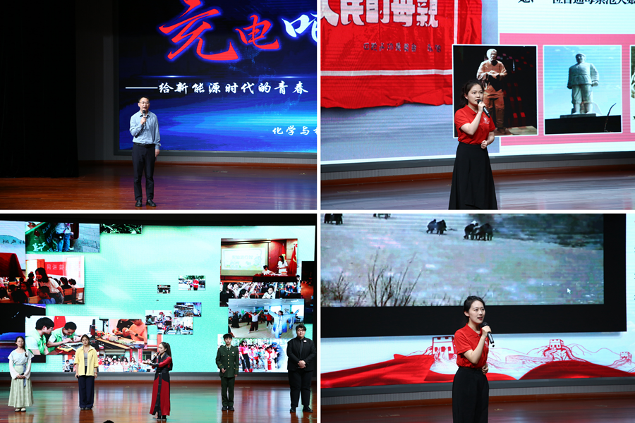 表彰大會上,我校青年師生通過宣講、訪談、紀實短片、朗誦、風采展示等多種形式分享了他們朝氣蓬勃、昂揚進取的青春風貌。大會發布了由我校青年學生結合人工智能技術設計的“青春蘇師”青年卡通形象;“星漢”青年宣講團成員帶來的宣講團進思政課“微展示”《讀懂“堅持以人民為中心”背后的“為民密碼”》,以青年視角解讀黨的創新理論,傳遞信仰之聲;青年展示《青春閃光點:尋找閃閃發光的你》中,5位“追光青年”代表分享了各自獨特的青春故事,展現了我校青年的多樣風采;《挑戰歸來話成長》以“微訪談”的形式,邀請“挑戰杯”競賽參賽學生分享了他們在科創競賽中淬煉成長的難忘經歷,展現了青年攻堅克難的創新銳氣;風采展示《青春走向田野》展現了我校眾多團隊和個人投身基層實踐、甘于奉獻的生動場景;第26屆研究生支教團在支教地自行拍攝的紀實短片展現了志愿者扎實的教育教學工作,志愿者代表的朗誦《支教十年筑夢川陜:我們的青春在西部》回顧了我校志愿者十年來接續奔赴陜西、四川開展支教工作的奮斗歷程;化學與材料科學學院院長賴超教授的宣講《充電吧!——給新能源時代的青春“蓄個大的”》用三個關鍵詞:“打破”“接納”“超越”分享了自己的成長經歷,鼓勵青年學生既要經得起歲月的“循環充放”,又能在國家需要時毫無保留地釋放青春能量;校、院學生會代表《像我們這樣的朋友》展示了我校各級學生會組織扎根校園、服務青年的特色項目,大會在青年們自編自演的原創歌舞中圓滿結束。