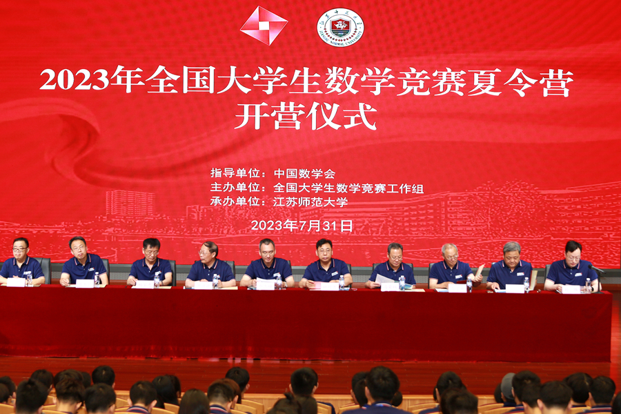 7月30日至8月5日,由中國(guó)數(shù)學(xué)會(huì)指導(dǎo)、全國(guó)大學(xué)生數(shù)學(xué)競(jìng)賽工作組主辦,我校承辦的2023年全國(guó)大學(xué)生數(shù)學(xué)競(jìng)賽夏令營(yíng)在馬可音樂(lè)廳成功舉行。中國(guó)數(shù)學(xué)會(huì)數(shù)學(xué)競(jìng)賽委員會(huì)副主任、全國(guó)大學(xué)生數(shù)學(xué)競(jìng)賽工作組組長(zhǎng)、北京航空航天大學(xué)教授佘志坤,江蘇師范大學(xué)副校長(zhǎng)杜增吉,江蘇省工業(yè)與應(yīng)用數(shù)學(xué)學(xué)會(huì)理事長(zhǎng)、東南大學(xué)數(shù)學(xué)學(xué)院院長(zhǎng)、歐洲科學(xué)院院士曹進(jìn)德,全國(guó)大學(xué)生數(shù)學(xué)競(jìng)賽工作組副組長(zhǎng)、北京大學(xué)教授馮榮權(quán),北京數(shù)學(xué)會(huì)秘書長(zhǎng)、北京大學(xué)教授楊家忠,北京航空航天大學(xué)教授高宗升,山東數(shù)學(xué)會(huì)副理事長(zhǎng)、山東大學(xué)教授崔玉泉,北京地質(zhì)大學(xué)數(shù)理學(xué)院院長(zhǎng)高世臣,湖南交通工程學(xué)院黨委副書記馮良貴出席開(kāi)營(yíng)儀式。