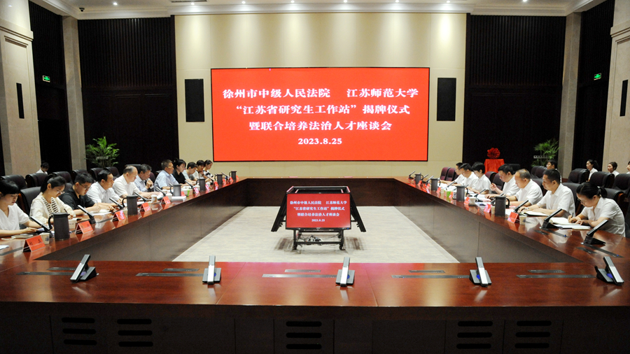 8月25日,我校和徐州市中級人民法院共同舉行“江蘇省研究生工作站”揭牌儀式并召開聯(lián)合培養(yǎng)法治人才座談會。我校和徐州市中級人民法院黨組書記、院長劉建功,我校黨委書記方忠出席會議,共同為“江蘇省研究生工作站”揭牌。