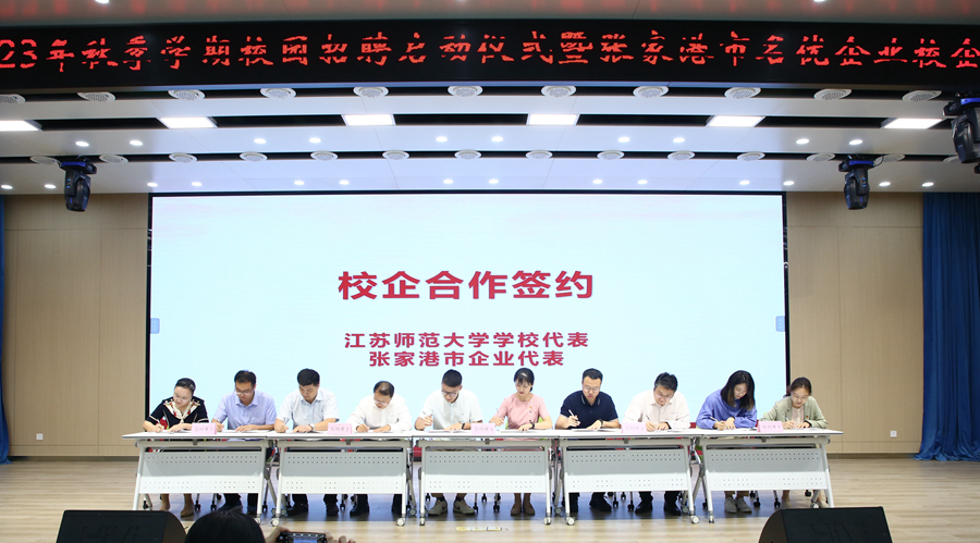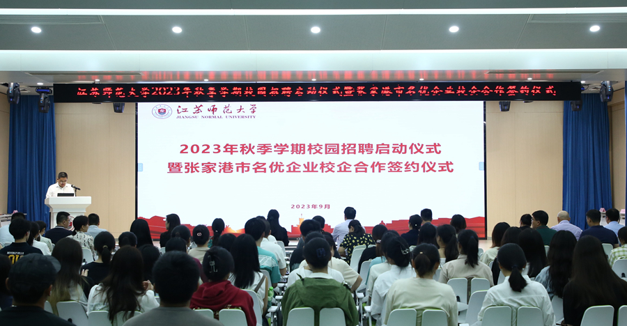 9月5日下午,我校2023年秋季學(xué)期校園招聘啟動(dòng)儀式暨張家港市名優(yōu)企業(yè)校企合作簽約儀式在泉山校區(qū)路演大廳舉行。校黨委常委、副校長(zhǎng)張玉勤,張家港市人力資源和社會(huì)保障局黨委委員、人力資源管理服務(wù)中心主任盛宇紅及其相關(guān)部門(mén)負(fù)責(zé)人,張家港市24家知名企業(yè)人力資源主管,校研究生院、學(xué)生工作處相關(guān)領(lǐng)導(dǎo),各學(xué)院黨委副書(shū)記、就業(yè)輔導(dǎo)員,2024屆畢業(yè)生代表參加了活動(dòng)。