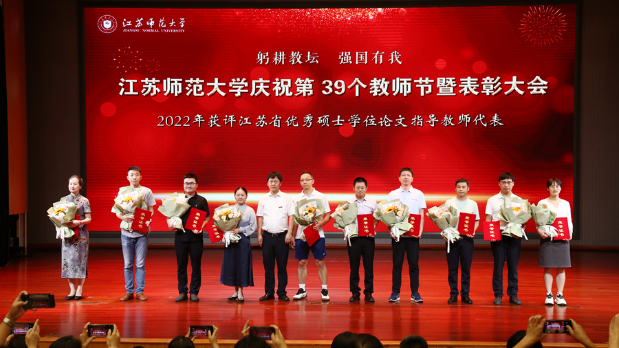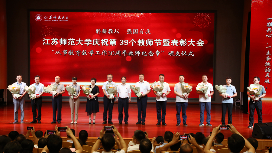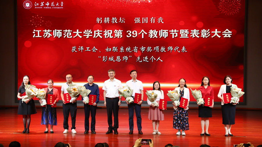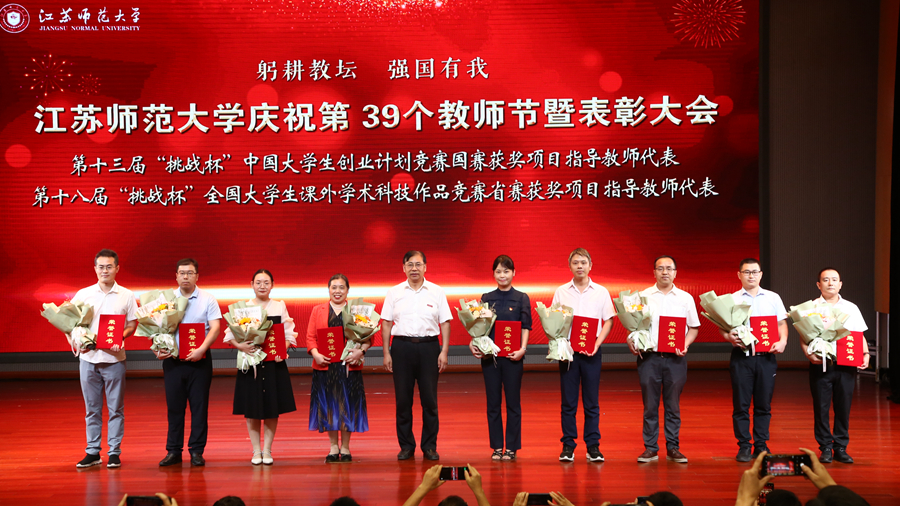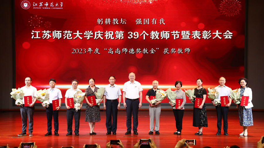 步錦昆代表江蘇省教育基金會講話,向工作在教育事業一線的廣大教職工致以節日問候和誠摯感謝,向獲得表彰的集體和個人表示熱烈祝賀。他表示,習近平總書記關于教育的重要論述,為全面深化新時代教師隊伍建設、推動大學高質量發展提供了根本遵循。省教育基金會在高校設立“高尚師德獎教金”,旨在弘揚中華民族優秀傳統美德,助力學校加強師德師風建設。衷心希望江蘇師范大學的全體老師以受表彰的老師為榜樣,不忘初心、牢記使命,愛崗敬業、教書育人,修身崇德、砥礪前行,努力做“有理想信念、有道德情操、有扎實學識、有仁愛之心”的“四有”好老師和做“學生錘煉品格、學習知識、創新思維、奉獻祖國”的“四個引路人”。