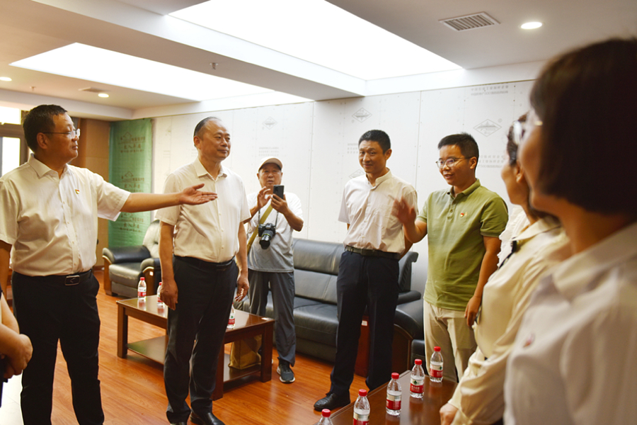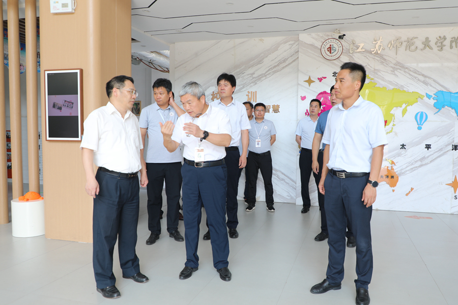在江蘇師范大學附屬學校,周汝光一行實地走訪了教師辦公室、教室、文化長廊等,與教職工進行親切交談,進一步了解附屬學校辦學理念、辦學規模、師資力量及軟硬件設施等情況。交流會上,與會人員觀看了附屬學校的宣傳片,聽取了近年來該校關于發展歷程和取得的成績匯報。周汝光對附屬學校的辦學成效給予充分肯定,希望學校依托師大教育資源優勢,不斷創新、砥礪前行,為教育事業的發展作出新的更大貢獻。