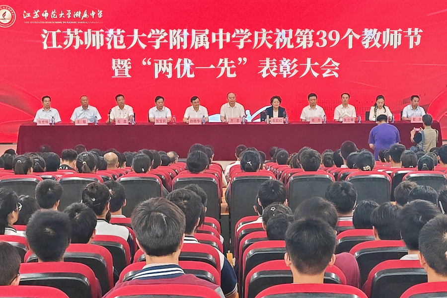在江蘇師范大學附屬中學,方忠、商亮一行聽取了附屬中學辦學情況匯報并與附中領導班子及教師代表開展座談交流。在教師節表彰大會上,方忠回顧了江蘇師大與附屬中學的歷史淵源并簡要介紹了師大為附中在廣納優秀人才和爭取優質資源上所做的工作。方忠還圍繞努力辦一所人民滿意的學校、努力建設一所特色鮮明的高品質示范高中、傳承打造高品位校園文化等方面提出希望和要求。