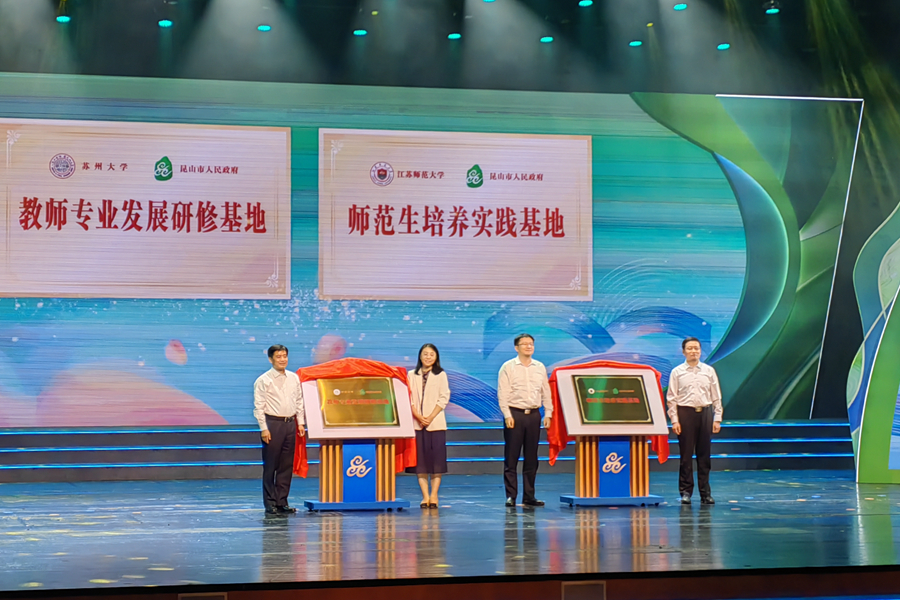 在江蘇師范大學附屬昆山市實驗中學,商亮一行實地考察了校園,并與學校領導班子進行座談。在教師節慶祝表彰大會上,商亮充分肯定了附屬昆山市實驗中學在合作辦學上所取得的成績,勉勵全體師生各司其職,共赴美好。在昆期間,商亮與昆山市相關領導進行座談,雙方就基礎教育合作辦學、師范生培養等方面開展深入交流,并受邀出席昆山市委市政府舉辦的教師節主題活動并為師范生培養實踐基地揭牌。