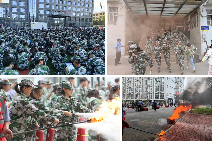第二階段校內技能操練中,學校邀請徐州醫科大學師生開展心肺復蘇應急救護培訓,武裝部、保衛處聯合組織消防疏散演練、消防滅火演練;邀請屬地公安民警進行反詐宣傳,學工部與武裝部聯合開展“紅歌嘹亮”拉歌大賽、軍訓攝影比賽;與公寓中心聯合開展內務檢查評比,檢驗軍訓內務訓練成果。校醫院全程為軍訓工作開展提供醫療保障。科文學院還組織潘安湖校區新生進行了校外拉練。