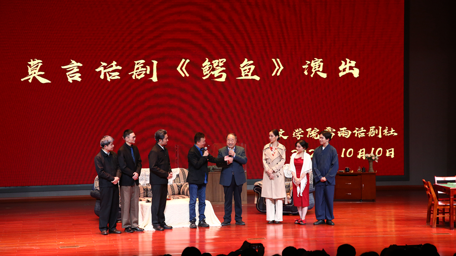 10日下午,在馬可音樂廳舉辦了新時(shí)代文學(xué)論壇暨第52期“潤德講堂”:莫言報(bào)告會(huì)。在報(bào)告會(huì)第一階段“青春劇場(chǎng)”單元,學(xué)生社團(tuán)文學(xué)院雷雨劇社表演了話劇《鱷魚》選段,受到莫言、央華戲劇藝術(shù)總監(jiān)王可然等專家的肯定和鼓勵(lì)。副校長張玉勤為王可然老師頒發(fā)了“校外美育導(dǎo)師”聘書。