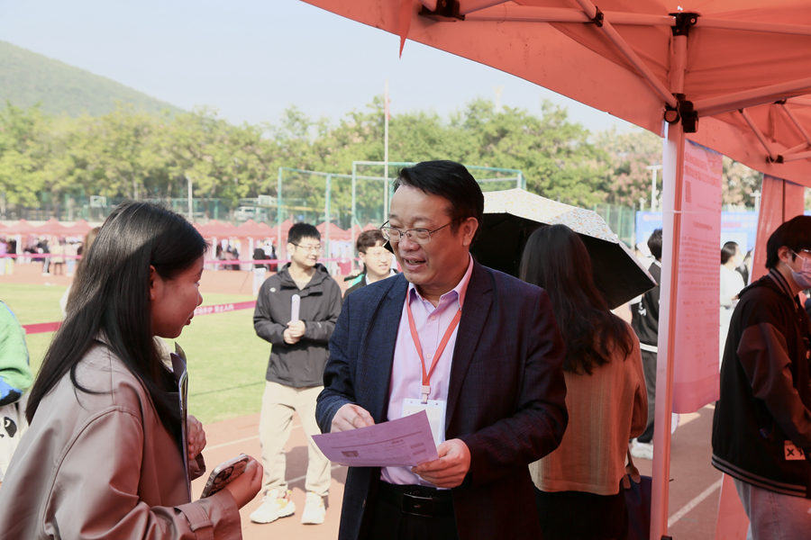 10月的校園風和日麗,秋高氣爽,招聘會現場人頭攢動,絡繹不絕,266家用人單位的展位前應聘的畢業生們紛至沓來,向招聘單位或是投遞簡歷或是咨詢需求或是簽訂意向書,更有低年級的同學利用這次機會開展了就業市場的調研。張玉勤在現場與用人單位和參會同學們開展了深入交流,了解秋季招聘計劃、各類崗位具體要求,密切關注畢業生就業意愿并指導求職學生完善簡歷,鼓勵同學們抓住機會,自信展示,盡早就業。