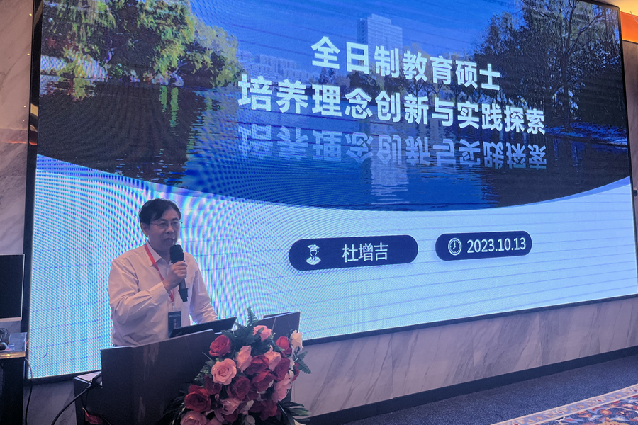 研討會上,杜增吉作了題為《江蘇師范大學全日制教育碩士培養(yǎng)理念創(chuàng)新與實踐探索》的專題報告,主要圍繞我校教育碩士研究生“U-S雙主體”培養(yǎng)模式、質量工程建設、案例研發(fā)與案例教學、實踐教學模式、聯(lián)合培養(yǎng)基地建設等幾個方面進行了實踐探索經(jīng)驗及取得的相關成就分享,受到與會代表的廣泛關注和一致好評。