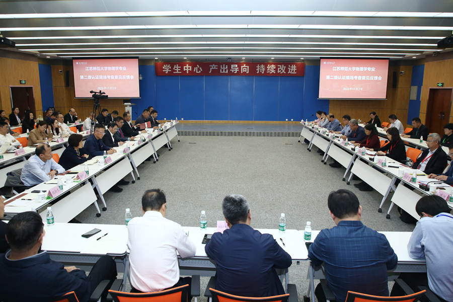 11月2日下午,現場考查意見反饋會在分析測試中心300會議室召開。專家組全體成員,江蘇省教育評估院副院長吳立平,主任許慧、王欣蕊、李瑞恒,我校黨委副書記、校長周汝光,黨委常委、副校長趙鵬出席會議。學校相關職能部門負責人、認證專業所在學院負責人、專業負責人及教師代表參加會議。