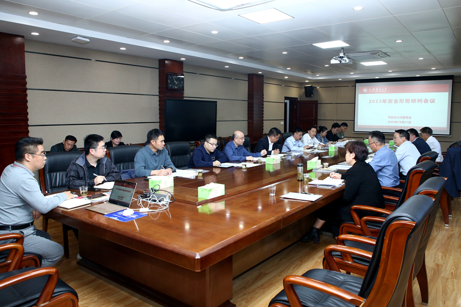 張玉勤作總結講話。他指出,召開安全形勢研判會議,開展安全管理專題學習,分析學校安全管理難點,研判校園安全形勢,對于進一步明確安全管理責任,做好學校安全管理工作具有重要意義。他強調,學校安全是事業發展的基礎和保障,各相關部門要深入學習貫徹習近平總書記關于安全生產的重要論述,要時刻繃緊安全之弦,提高思想認識,層層壓緊安全責任,以“萬無一失”的防范舉措防止“一失萬無”的嚴重后果;要嚴格遵守《安全生產法》《江蘇省消防條例》等法律法規,聚焦消防安全、治安安全、實驗室安全、食品及飲用水安全、交通安全、施工安全等重點領域,強化協同,全面排查治理校園安全隱患,實現安全隱患整改“清死角、除空白、掃盲區”;要進一步提升應急處突水平,不斷完善所負責業務領域內的應急預案,確保符合實際、可操作性強,遇有重要緊急情況,要及時采取有效措施妥善應對。