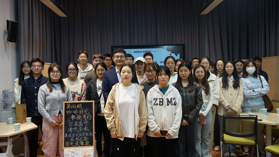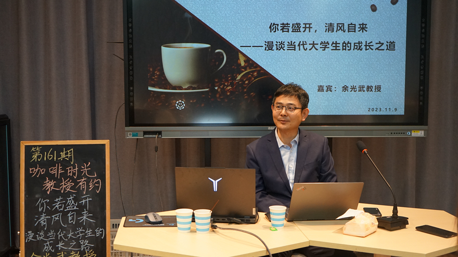 11月9日下午,第161期“咖啡時光·教授有約”活動在“六點匯”實踐基地舉行。余光武教授就“你若盛開,清風自來——漫談當代大學生的成長之道”這一主題與在場同學進行了分享交流。
