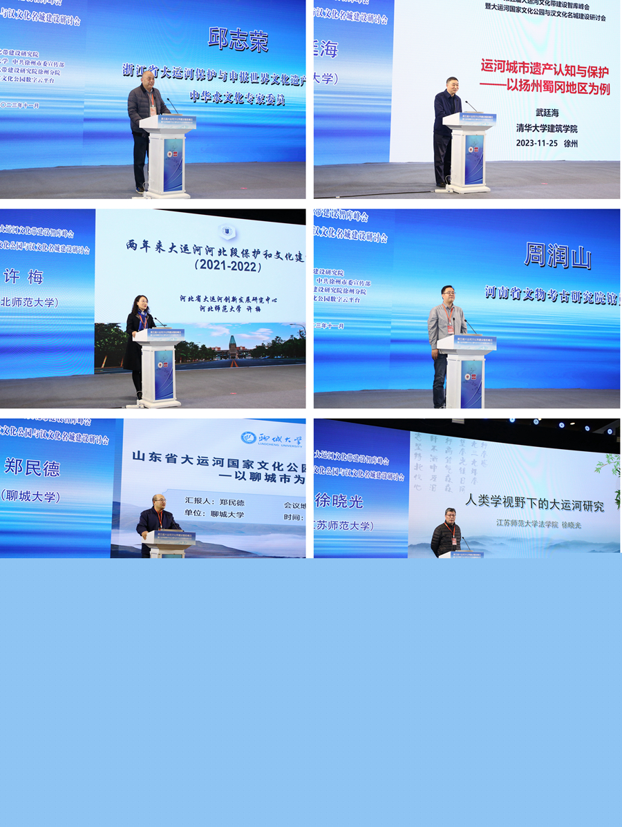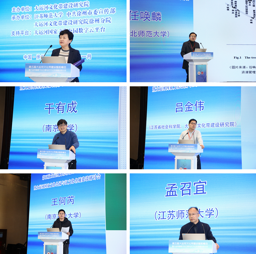大會主旨報告會由我校黨委書記、大運河文化帶建設研究院徐州分院院長方忠主持。清華大學建筑學院教授武廷海,河南省文物考古研究院館員周潤山,聊城大學運河學研究院副院長鄭民德等7位專家學者,圍繞“大運河文化帶建設”主議題進行主題演講,就大運河保護傳承利用、運河城市遺產認知與保護、大運河國家文化公園建設、人類學視野下的大運河、運河特點及歷史分期等內容進行研討。專題報告會由校黨委常委、副校長婁崢嶸主持。6位與會專家學者圍繞“大運河國家文化公園與漢文化名城建設”主題,從不同角度對國家文化公園規劃建設實踐、大運河國家文化公園文旅融合高質量發展進路、大運河與長江國家文化公園協同融合建設、凝練打造大運河共性文化精神標識、大運河意向符號建構、漢文化名城的內在邏輯與實踐路徑等方面進行了闡述。圓桌沙龍階段,8位與會專家學者圍繞“國家文化公園助推漢文化名城建設”主題,分別從各自專業視角進行專家對話和發言討論。
