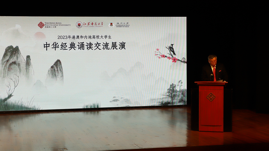 10月28日,習(xí)近平總書(shū)記在中共中央政治局第九次集體學(xué)習(xí)時(shí)再次強(qiáng)調(diào),要不斷構(gòu)筑中華民族共有精神家園,不斷增強(qiáng)對(duì)中華民族的認(rèn)同感和自豪感,以語(yǔ)言相通促進(jìn)心靈相通、命運(yùn)相通。中華經(jīng)典詩(shī)文作為中華優(yōu)秀傳統(tǒng)文化的瑰寶,蘊(yùn)藏著中華民族的價(jià)值追求、精神品格和審美情趣,是中華民族最基本的文化基因之一,是內(nèi)地和港澳青年共同的精神家園。為讓更多的青年大學(xué)生感受到中華文化的魅力,持續(xù)促進(jìn)三地青年的交流交心,實(shí)現(xiàn)國(guó)家民族血脈的流通,11月13日至16日,在教育部港澳臺(tái)辦和語(yǔ)言文字應(yīng)用管理司的支持和指導(dǎo)下,由江蘇師范大學(xué)、香港理工大學(xué)和澳門大學(xué)共同舉辦的2023年“港澳和內(nèi)地高校大學(xué)生中華經(jīng)典誦讀交流展演”香港站和澳門站展演與文化交流活動(dòng)分別在香港理工大學(xué)和澳門大學(xué)舉行,來(lái)自港澳和內(nèi)地的大學(xué)生為港澳地區(qū)的青年共同呈現(xiàn)了兩場(chǎng)精彩的中華經(jīng)典詩(shī)文誦讀演出。