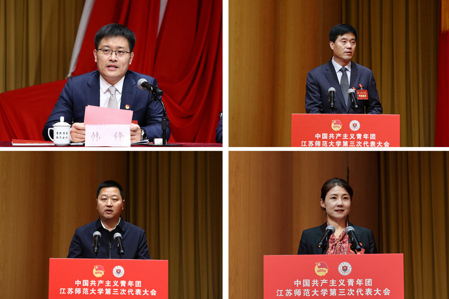 共青團(tuán)江蘇省委副書記熊俊代表共青團(tuán)江蘇省委向大會(huì)的召開表示熱烈的祝賀,對(duì)江蘇師大青年師生致以誠(chéng)摯的問候。他指出,江蘇師大各級(jí)團(tuán)組織主動(dòng)融入“三全育人”大思政工作格局,積極投身學(xué)校高水平大學(xué)建設(shè),團(tuán)結(jié)引領(lǐng)全校青年師生勇?lián)姑?、扎?shí)奮斗,為學(xué)校各項(xiàng)事業(yè)高質(zhì)量發(fā)展作出積極貢獻(xiàn),為全省共青團(tuán)工作提供了有效經(jīng)驗(yàn)。熊俊希望我校共青團(tuán)今后堅(jiān)持用黨的創(chuàng)新理論武裝青年,引導(dǎo)青年堅(jiān)定信念、把牢航向;堅(jiān)持把握“先鋒力量”的內(nèi)在要求,動(dòng)員青年挺膺擔(dān)當(dāng)、奮勇爭(zhēng)先;堅(jiān)持大抓基層的鮮明導(dǎo)向,著力加強(qiáng)團(tuán)組織和團(tuán)干部隊(duì)伍建設(shè)。他號(hào)召新時(shí)代江蘇師范大學(xué)青年要始終與黨同心、緊跟黨走,挺膺擔(dān)當(dāng)、勇毅前行,為推動(dòng)高質(zhì)量發(fā)展走在前列、譜寫“強(qiáng)富美高”新江蘇現(xiàn)代化建設(shè)新篇章貢獻(xiàn)更大青春力量。