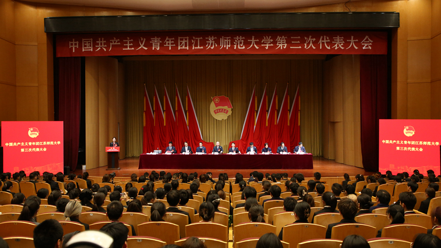 12月6日,共青團(tuán)江蘇師范大學(xué)第三次代表大會(huì)在馬可音樂廳隆重召開。校黨委書記方忠,共青團(tuán)江蘇省委副書記熊俊,校黨委常委、副校長(zhǎng)張玉勤,共青團(tuán)徐州市委書記韓鋒出席開幕式,團(tuán)省委高校工作部相關(guān)負(fù)責(zé)人,各兄弟高校團(tuán)委主要負(fù)責(zé)人,我校省第十六次團(tuán)代會(huì)代表、市第二十次團(tuán)代會(huì)代表,省、市青聯(lián)委員,校相關(guān)部門負(fù)責(zé)人以及部分老團(tuán)干代表參加開幕式。大會(huì)還收到了來自南京大學(xué)、浙江大學(xué)、中國(guó)海洋大學(xué)、四川大學(xué)、云南大學(xué)、西安交通大學(xué)、蘭州大學(xué)等兄弟高校團(tuán)委的共計(jì)46封賀信。