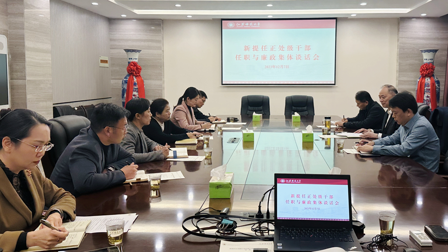 12月7日下午,我校在3號(hào)樓402會(huì)議室舉行新提任正處級(jí)干部任職與廉政談話會(huì)。校黨委書記方忠、紀(jì)委書記閭浩出席會(huì)議,黨委組織部部長(zhǎng)黃德志主持集體談話會(huì)。