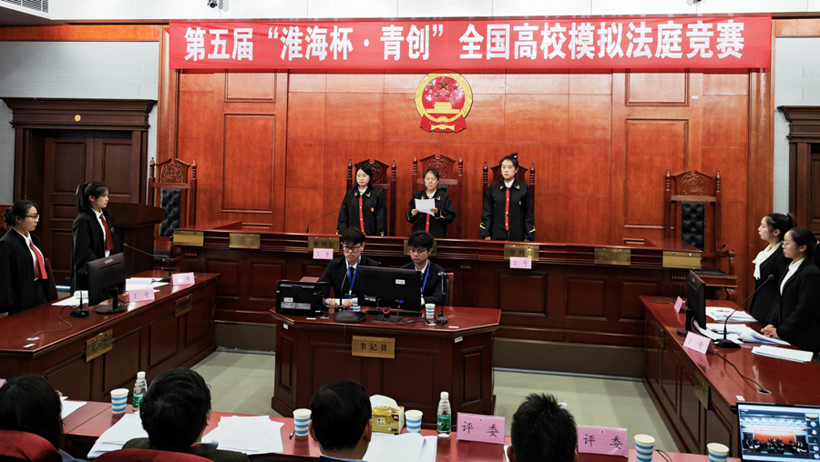 近日,第五屆“淮海杯·青創”全國高校模擬法庭競賽在我校舉辦。“淮海杯”全國高校模擬法庭競賽是中國法學會法學教育研究會模擬法庭專業委員會和江蘇師范大學共同主辦的年度專業賽事,也是模擬法庭專業委員會支持創辦的唯一模擬法庭賽事。本屆賽事由我校法學院承辦,江蘇青創律師事務所協辦。為保證比賽的公平、公正,本次競賽的評委主要由法院、檢察院、律師等法治實務部門經驗豐富的專家以及國內高校法學教育專家組成。