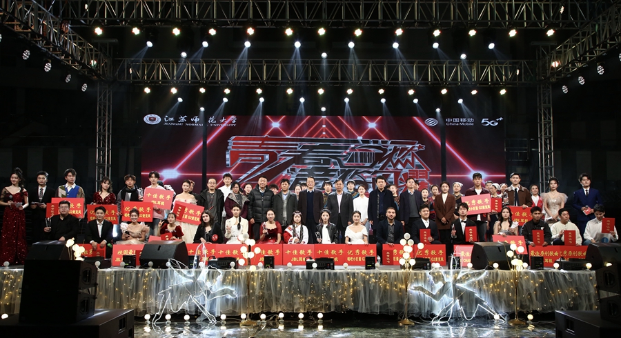 12月15日晚,“中國移動杯”第34屆“青春當燃‘音’你閃耀”校園十佳歌手大賽總決賽在泉山校區體育館成功舉辦。副校長張玉勤、杜增吉、董曉臣,校紀委書記閭浩及相關部門負責同志,中國移動銅山分公司總經理吳劍東、副總經理龔兵出席活動。國家一級藝術監督、導演曹曙林,中國音樂家協會會員王躍萍,徐州市泉山區文聯副主席吳雪梅,徐州電視臺音樂總監林非,徐州市音樂家協會副主席高志應邀擔任評委。