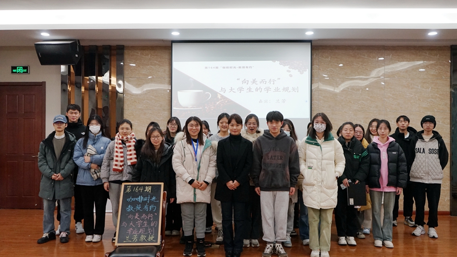 12月14日下午,第164期“咖啡時光·教授有約”活動在江蘇師范大學(xué)泉山校區(qū)心理團輔室舉行。蘭芳教授就“‘向美而行’與大學(xué)生的學(xué)業(yè)規(guī)劃”這一主題與在座同學(xué)進行交流。