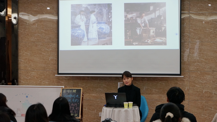 蘭芳從“美”的定義開始本次講座,通過AI繪制的圖片讓同學(xué)們感悟美的通用性,以此鼓勵同學(xué)們?nèi)フJ(rèn)識美、欣賞美。蘭芳認(rèn)為人類社會發(fā)展的進步也推動美的進步,讓美的生成更簡潔化。她根據(jù)一組文創(chuàng)圖片讓同學(xué)們意識到,美應(yīng)用在實用的日常用品上時還能推廣民族文化。她提議當(dāng)代大學(xué)生要有敏銳的眼光,去發(fā)現(xiàn)美的人和事,要熱愛環(huán)境、熱愛專業(yè)。隨后,蘭芳讓同學(xué)們欣賞了從不同視角拍攝的獨屬于師大校園的美,帶領(lǐng)同學(xué)們認(rèn)識生活中具有經(jīng)典性的美,結(jié)合徐州漢文化城市IP卡通形象和一些文創(chuàng)作品,與同學(xué)們一起探索藝術(shù)美。最后,蘭芳就一位同學(xué)的學(xué)業(yè)規(guī)劃,結(jié)合自己的大學(xué)生涯,解釋王國維《人間詞話》里的最經(jīng)典的三句話,以此啟示同學(xué)們,發(fā)現(xiàn)美不難,執(zhí)行、轉(zhuǎn)化成藝術(shù)更難;我們的社會發(fā)展離不開美,有了我們對美的發(fā)現(xiàn),我們的生活才更加美好。