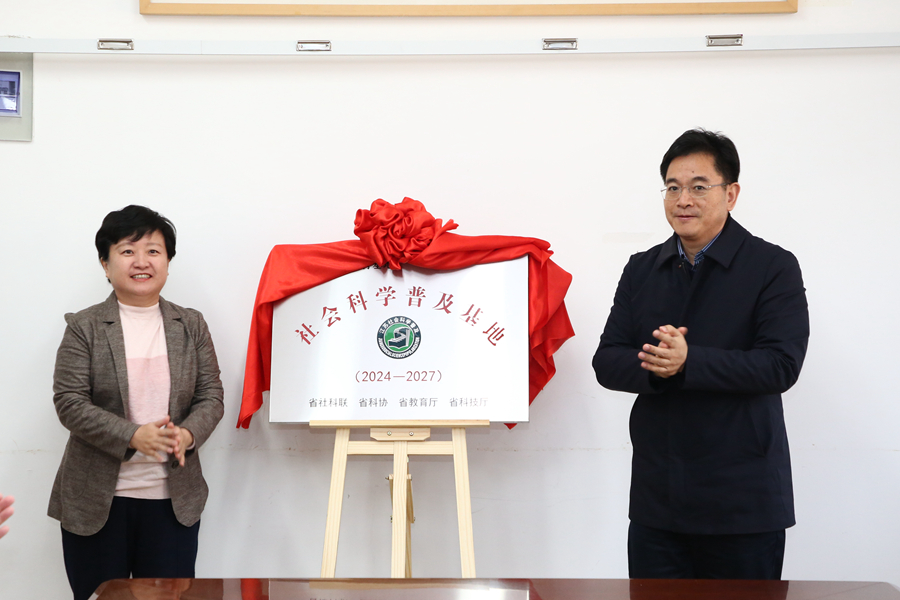 基地負責(zé)人黃德志向省社科聯(lián)領(lǐng)導(dǎo)匯報了中國作協(xié)新時代文學(xué)研究中心(江蘇師范大學(xué)基地)的建設(shè)和發(fā)展概況,并就下一步基地建設(shè)匯報了工作設(shè)想。許益軍與婁崢嶸共同為省社會科學(xué)普及基地揭牌。