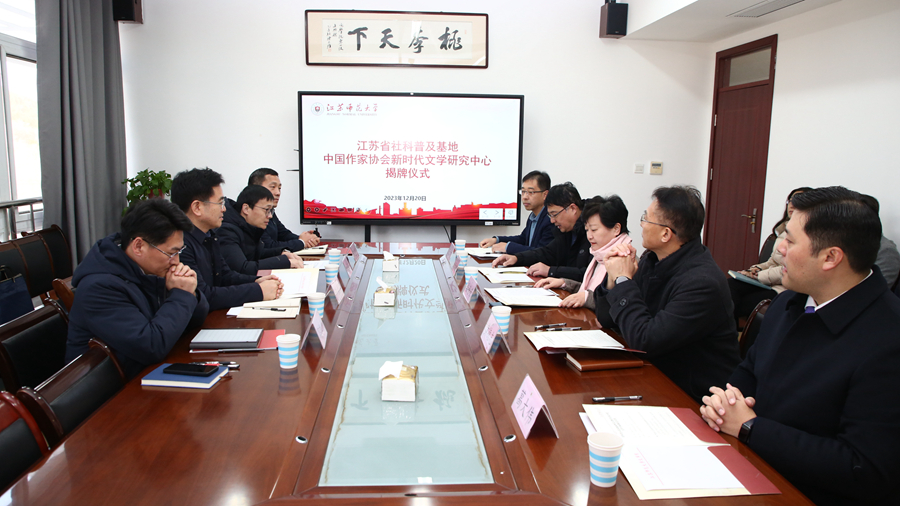 12月20日上午,省社科普及基地揭牌儀式暨省社科評獎文學(xué)專場調(diào)研會在江蘇師范大學(xué)舉行。省社科聯(lián)黨組成員、副主席許益軍,省社科聯(lián)科普部(評獎辦)主任朱建波,省社科聯(lián)科普部(評獎辦)三級調(diào)研員路勝利,徐州市社科聯(lián)副主席宋宜平出席揭牌儀式,我校黨委常委、副校長婁崢嶸,黨委常委、組織部部部長、統(tǒng)戰(zhàn)部部長黃德志,人文社會科學(xué)研究院和文學(xué)院相關(guān)負責(zé)同志陪同調(diào)研并參加座談。