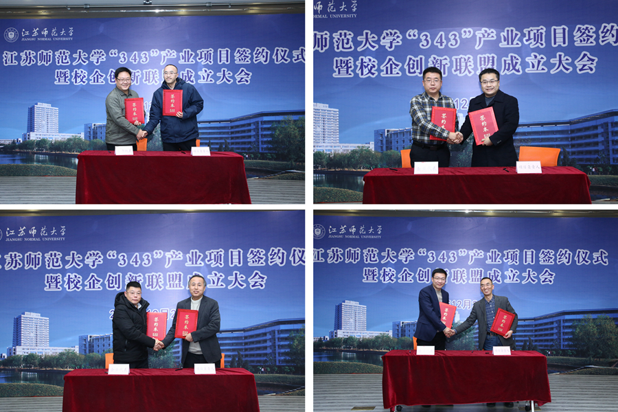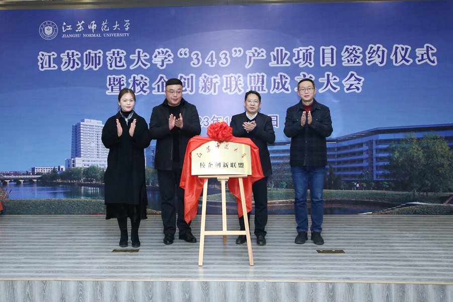 簽約儀式結束后,校黨委副書記、校長周汝光,校國家大學科技園管理委員會主任廉澄以及江蘇極易新材料有限公司、江蘇利瀧半導體科技有限公司等兩位企業的代表共同為“江蘇師范大學校企創新聯盟”揭牌。江蘇師范大學校企創新聯盟旨在為進一步落實徐州市“343”創新產業集群發展戰略部署,充分發揮江蘇師范大學創新資源優勢,促進合作企業高質量發展,共同推進科技創新和成果轉化。