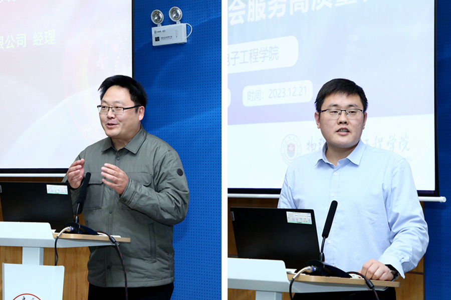 簽約儀式和揭牌儀式結束后,企業代表江蘇協鑫硅材料科技發展有限公司經理宮正介紹了企業情況,分享了對于合作的看法和期待,表達了對未來合作的信心和決心。隨后,校方代表物理與電子工程學院院長李印威分享了學院在校企合作中探索及成功的經驗。
