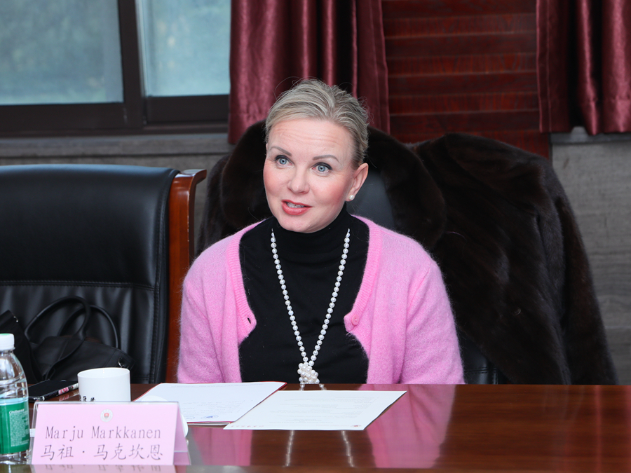 Marju Markkanen對我校的熱情接待表示感謝,并詳細(xì)介紹了芬蘭的育人理念、學(xué)生培養(yǎng)方式、教育體系等情況。她表示,芬蘭和中國一直保持著友好關(guān)系。新冠疫情后,教學(xué)方法發(fā)生了很大變化,她希望能與江蘇師大在基礎(chǔ)教育、教學(xué)研究、人才培養(yǎng)等方面開展深入合作,通過合作尋找新機(jī)會(huì),用教育改變世界。