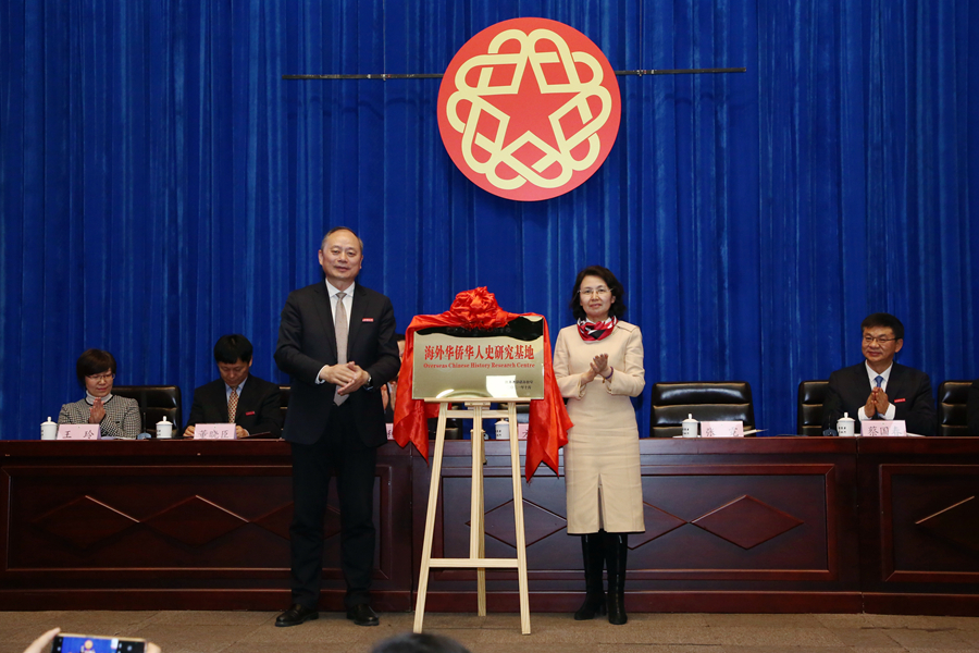 張霓和方忠共同為“江蘇省僑聯(lián)海外華僑華人史研究基地”揭牌