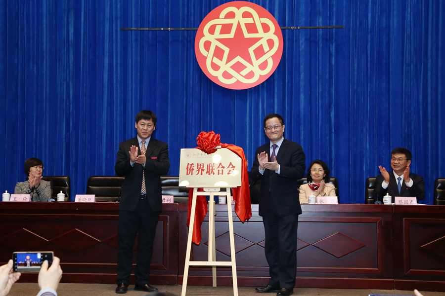 市僑聯(lián)主席曹君利和校僑聯(lián)主席董曉臣共同為僑聯(lián)揭牌