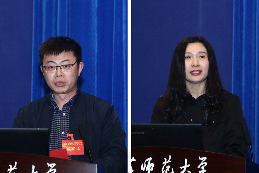 兄弟院校僑聯(lián)代表李偉和學(xué)校民主黨派代表周曉云致賀詞