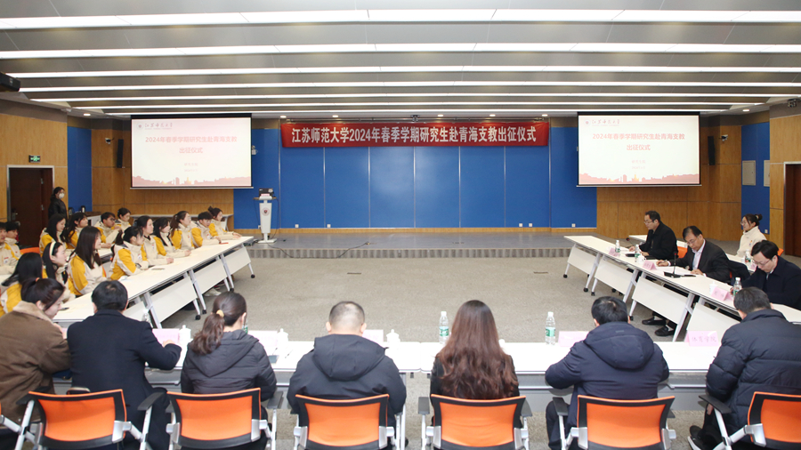 1月17日上午,江蘇師范大學(xué)第十一屆研究生青海支教團(tuán)出征儀式于泉山校區(qū)分析測試中心300會(huì)議室舉行。校黨委常委、副校長杜增吉,研究生院、研工部及相關(guān)學(xué)院領(lǐng)導(dǎo),往屆研究生青海支教團(tuán)代表和新一屆研究生青海支教團(tuán)全體成員參加活動(dòng)。