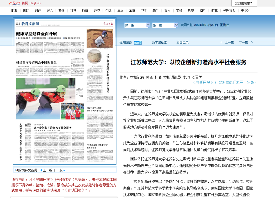 光明日?qǐng)?bào)1月21日?qǐng)?bào)道我校科研創(chuàng)新服務(wù)地方發(fā)展,報(bào)道內(nèi)容如下: