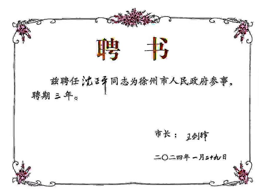 2月27日下午,徐州市政府參事聘任儀式在新城區行政中心舉辦,徐州市市長王劍鋒向15位受聘市政府參事頒發聘書并講話。我校“一帶一路”研究院執行院長沈正平教授受聘徐州市政府參事,這是他第三次獲聘。