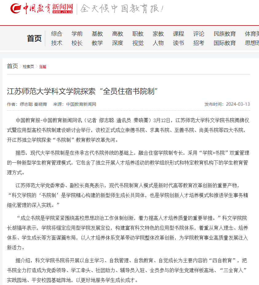 中國教育新聞網3月13日報道我校科文學院成立書院,報道內容如下: