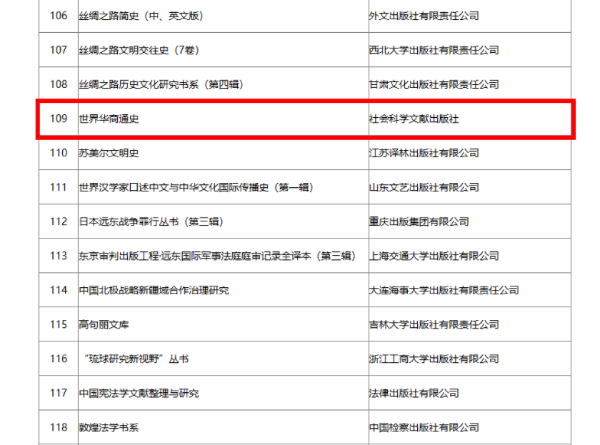 近日,國家出版基金規劃辦官網對2024年度國家出版基金資助項目予以公示。我校張秋生教授擔任首席專家的國家社科基金重大項目《世界華商通史》(五卷本)名列其中,計劃于社科文獻出版社出版。該著于2023年已獲批國家“十四五”社科重點出版項目。(一審:張秋生,二審:鄭曉坡,三審:殷子鈺)