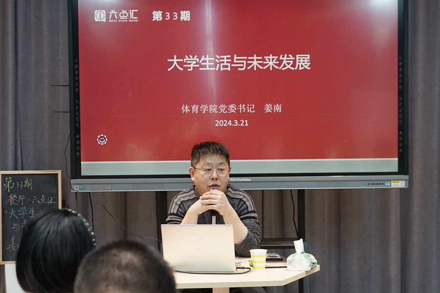 3月21日,第33期“餐廳·六點匯”活動在泉山校區六點匯實踐基地舉行。體育學院黨委書記姜南書記就“大學生活和未來發展”這一主題與同學們進行了交流。