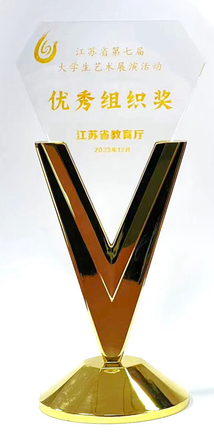 近日,由江蘇省教育廳主辦的江蘇省第七屆大學生藝術展演活動優(yōu)秀節(jié)目匯報演出在南京財經(jīng)大學舉行,我校團委(藝術教育中心)負責同志應邀在現(xiàn)場觀看演出并參加頒獎儀式。在本屆省大學生藝術展演活動中,我校共報送38件作品參賽,其中,藝術表演類作品11件、藝術實踐工作坊3件、藝術作品20件、微電影3件、高校美育改革創(chuàng)新優(yōu)秀案例1件。在我校師生的共同努力下,最終共榮獲省賽獎項42項,其中特等獎4項、一等獎4項、二等獎6項、三等獎21項,3項原創(chuàng)作品榮獲優(yōu)秀創(chuàng)作獎,3名學生榮獲優(yōu)秀大學生藝術團團員稱號,學校榮獲“優(yōu)秀組織獎”,入圍國賽作品1項。