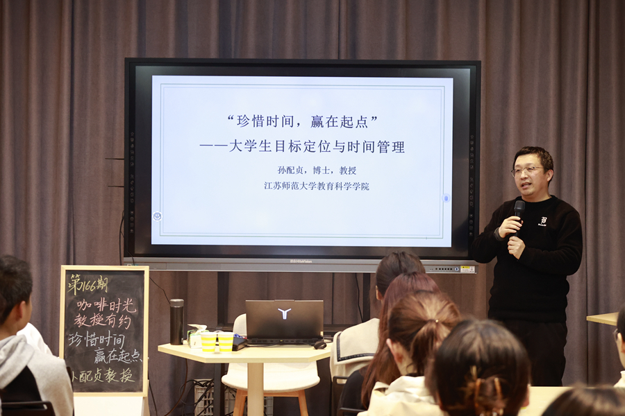 3月28日,第166期“咖啡時光·教授有約”活動在泉山校區園丁餐廳外六點匯實踐基地舉行。孫配貞教授就“珍惜時間,贏在起點——大學生目標定位與時間管理”這一主題與同學們進行了交流。