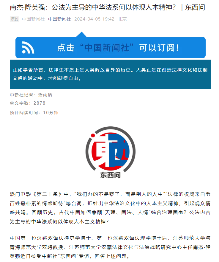 南杰·隆英強:中國法律史學泰斗張晉藩先生指出,中華法系由各族人民共同締造,凝聚各民族的法律智慧,是各民族的法律文化與法制經驗相互交流與吸收的成果。