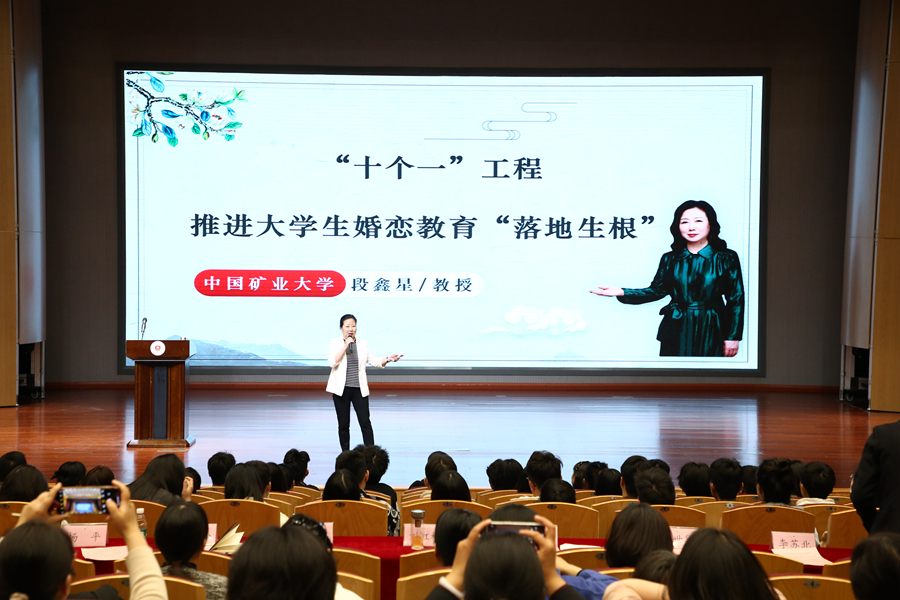 在大學生新型婚育文化培育行動專場活動中,中國礦業(yè)大學公共管理學院段鑫星教授作《“十個一工程”推進大學生婚戀教育“落地生根”》專題講座,對如何培育新型婚育文化進行了探討與解讀。