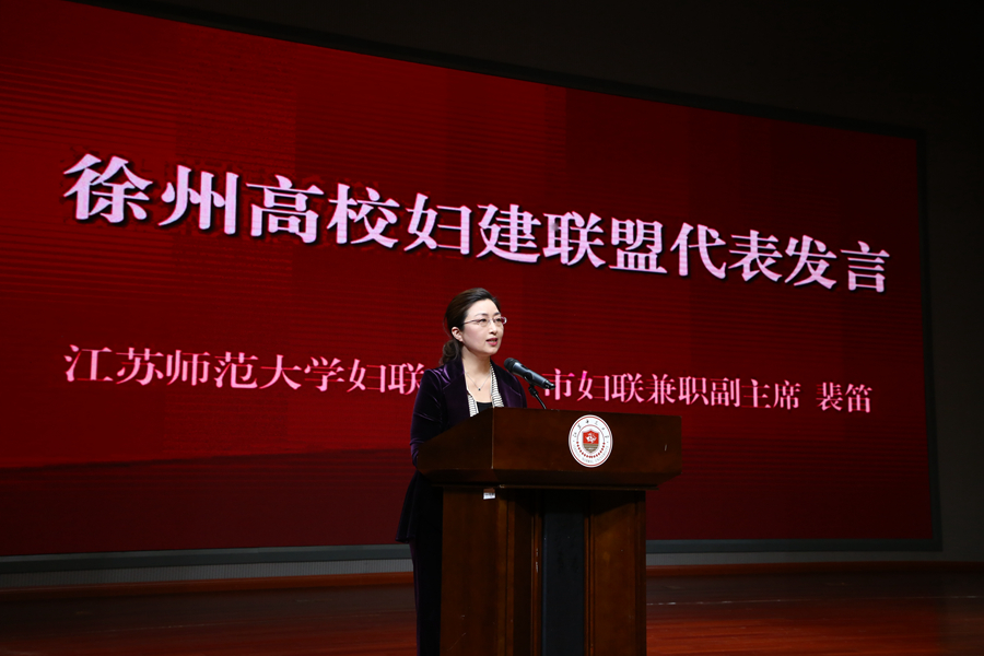 蔡國春在大會上致辭,向出席活動的嘉賓和師生表示熱烈歡迎,向長期關(guān)心支持我校事業(yè)發(fā)展的市委市政府、市婦聯(lián)以及兄弟高校的領(lǐng)導、同仁表示感謝。他指出,江蘇師范大學黨委堅持把婦女工作作為黨的工作重要組成部分,重視發(fā)揮女性師生的智慧和力量,積極為女性師生成長成才創(chuàng)造條件、搭建平臺。學校婦聯(lián)充分發(fā)揮“引領(lǐng)、服務、聯(lián)系”職能,帶領(lǐng)全校女性師生在學校高水平大學建設的各條戰(zhàn)線上貢獻才智、建功立業(yè),學校婦女事業(yè)呈現(xiàn)出蓬勃發(fā)展的良好態(tài)勢。高校婦建聯(lián)盟成立是新時代加強婦女工作的新形式新舉措,通過陣地共建、活動共辦、服務共促等方式,實現(xiàn)徐州高校婦建資源共享,為女性師生搭建新的交流活動平臺,實現(xiàn)以聯(lián)盟賦能巾幗“她力量”,將進一步促進高校婦女事業(yè)和婦聯(lián)工作高質(zhì)量發(fā)展。我校婦聯(lián)將以此次活動為新起點,進一步加強與在徐高校婦女組織之間的協(xié)同協(xié)作,凝聚高校女性師生力量,為打造徐州高校婦女事業(yè)和婦聯(lián)工作的“金字”招牌貢獻力量。