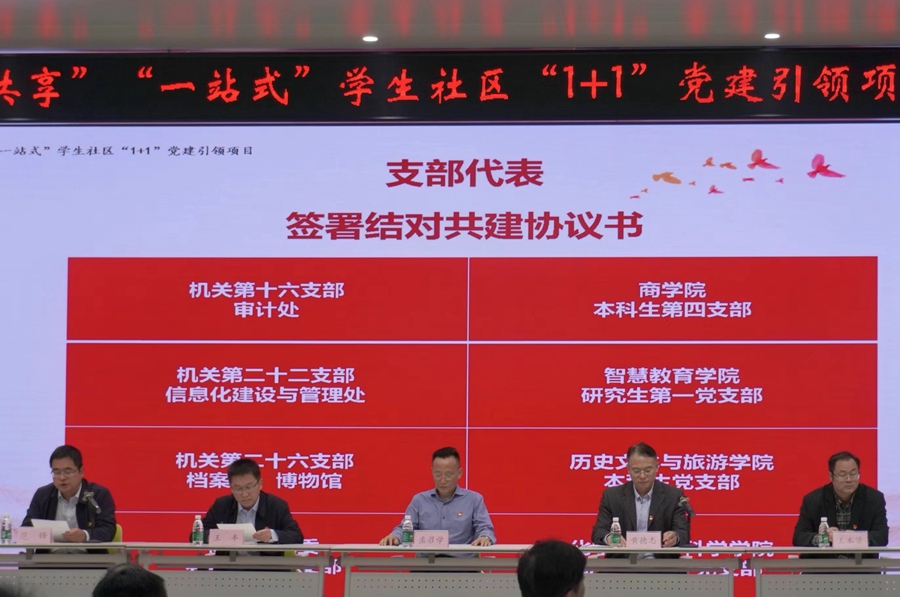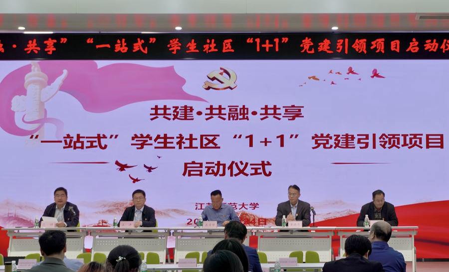 為進一步強化黨建引領,推動思政力量和資源下沉到學生社區一線,4月24日下午,學校舉辦“共建·共融·共享”——“一站式”學生社區“1+1”黨建引領項目啟動儀式。校黨委常委、宣傳部部長孟召學,黨委常委、組織部部長黃德志,研工部、學工部、機關黨委等單位負責人出席活動。首批“一站式”學生社區導師代表,各機關黨支部代表及學生黨支部代表等參加活動。