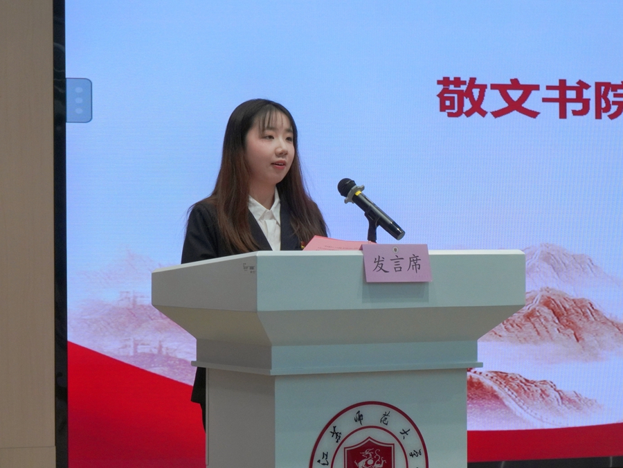 文學院15名學生代表以優美的詩詞吟誦,為全場觀眾展示了我校學生黨員主題教育系列活動優秀成果。